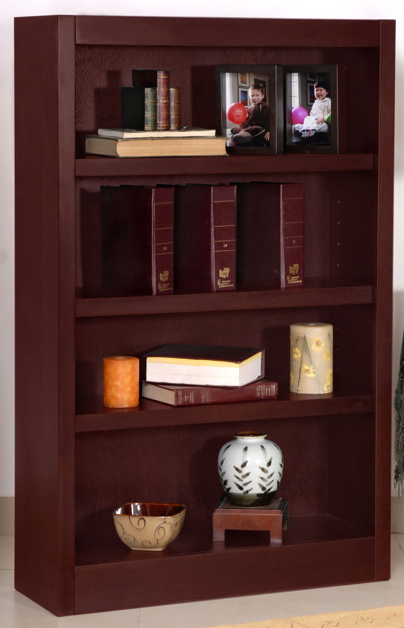 Grundy 48" High Cherry Single-Wide 4-Shelf Bookcase ... (Kyle Saunders) Of all the furniture pieces in an office, bookshelves might be some of the most useful. Adjustable shelving and a double wide design make the Eagle Furniture Oak Ridge Tall Double Wide Bookcase perfect for housing your library, collections, or a combination of both. The solid pine bookcases have adjustable shelves and arrive fully assembled.